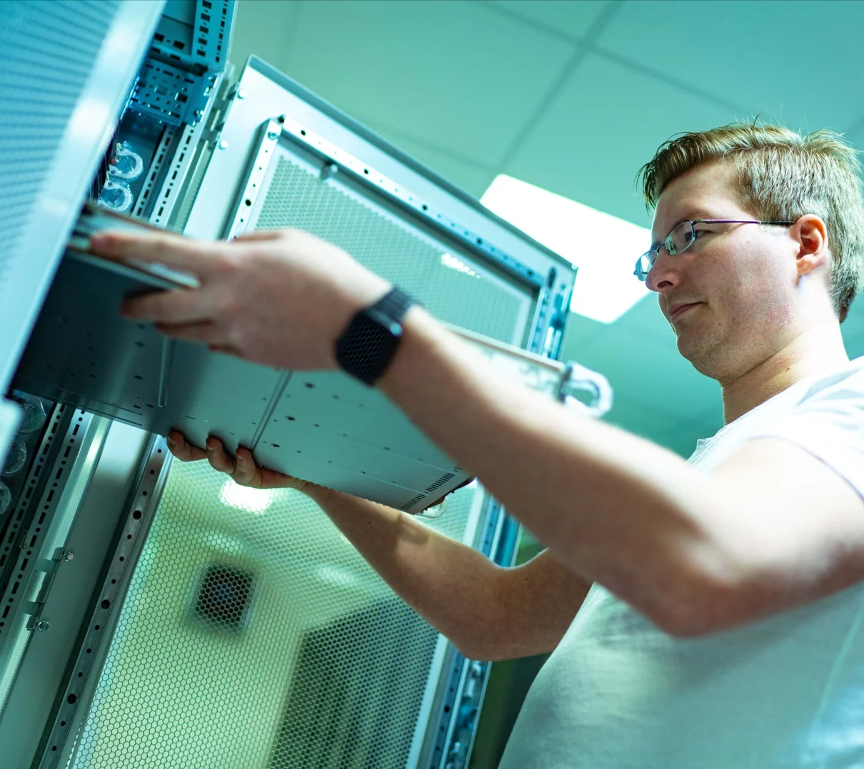 Nejlepší technické zázemí TIER III datacentra pro vaše servery, kde je samozřejmostí napájení ze 2 nezávislých větví. Naši technici se postarají o pravidelnou údržbu, konektivitu i výměnu součástí serveru.